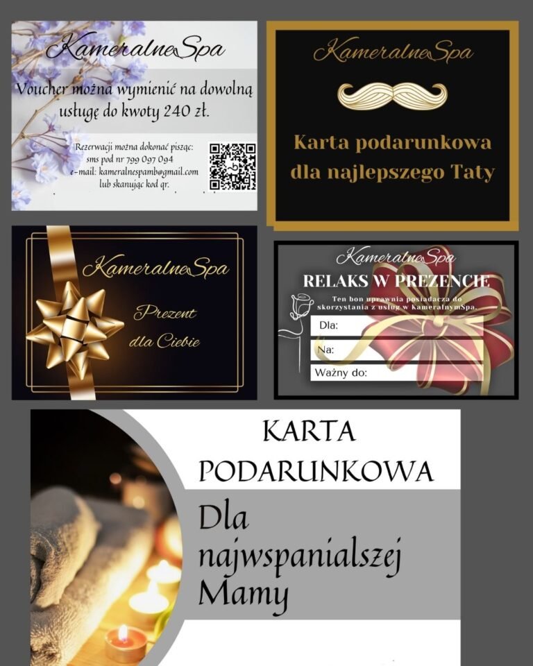 Szukasz pomysłu na prezent dla kogoś bliskiego? Voucher to idealne rozwiązanie. Możesz od razu wybrać usługę, na którą karta podarunkowa zostanie wystawiona lub w wersji kwotowej pozwolić osobie obdarowanej zdecydować, z jakiej usługi chce skorzystać. Każdy voucher projektowany jest indywidualnie, biorąc pod uwagę zainteresowania i charakter osoby dla której jest tworzony. Może zostać wysłany e-mailem lub na życzenie w formie papierowej. Dostępne płatności: gotówka, blik.
